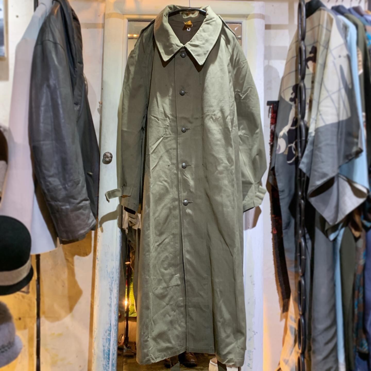 #vintageclothing #vtg #keepkyotoweird #kyoto #military #french #motercycle #coat #1940s #neverworn #deadstock #cotton #olivegreen